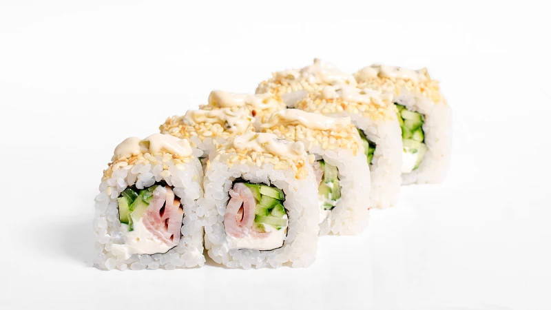 сыр сливочный, бекон, огурец свежий, кунжут обжаренный, соус из малосольных огурчиков *товар на фото может отличаться от оригинала