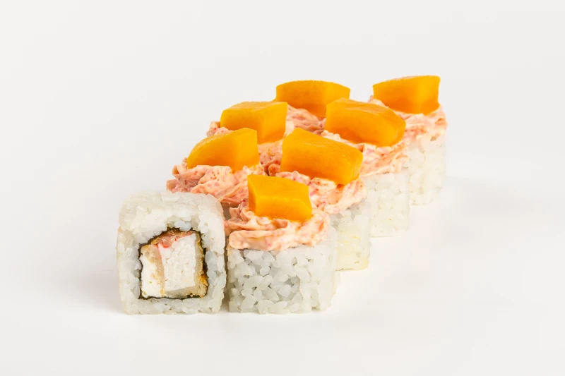 снежный краб в темпуре, сыр сливочный, манго, соус лава *товар на фото может отличаться от оригинала