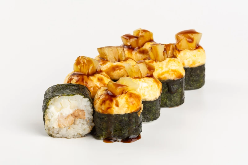 сыр сливочный, филе куриное, соус сырный для запекания, ананас, соус терияки *товар на фото может отличаться от оригинала